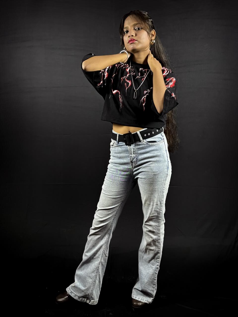 Premium 240 GSM cotton sinker Crop-Top with hand-crafted detailing and imported colors. Designed for comfort, durability, and a bold streetwear vibe.